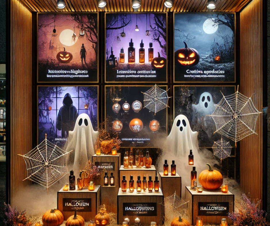 Crea una experiencia sensorial, añadiendo música de fondo de Halloween y difusores con aromas característicos como calabaza o canela. Esto no solo atrae la atención, sino que también mejora la experiencia del cliente.